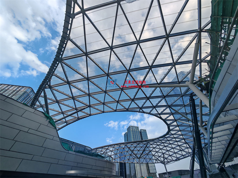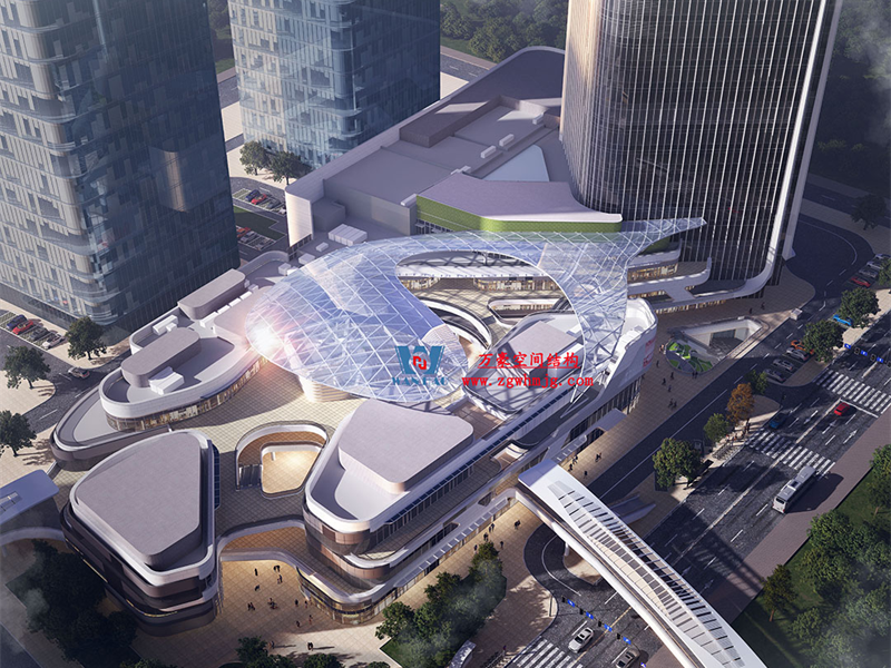 紹興華發金融活力城ETFE膜結構商業天幕工程位于浙江省紹興市,該項目ETFE膜結構展開面積約4100平方米。