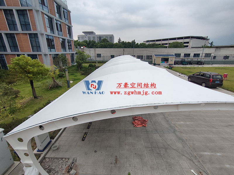 中國民用航空寧波空中交通管理站膜結構車棚建造項目位于浙江省寧波市寧波櫟社國際機場,該項目由寧波萬豪空間結構工程有限公司承建。