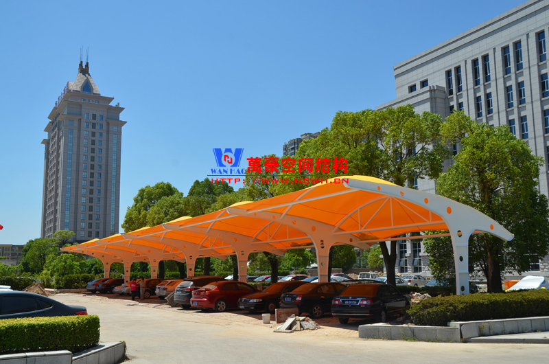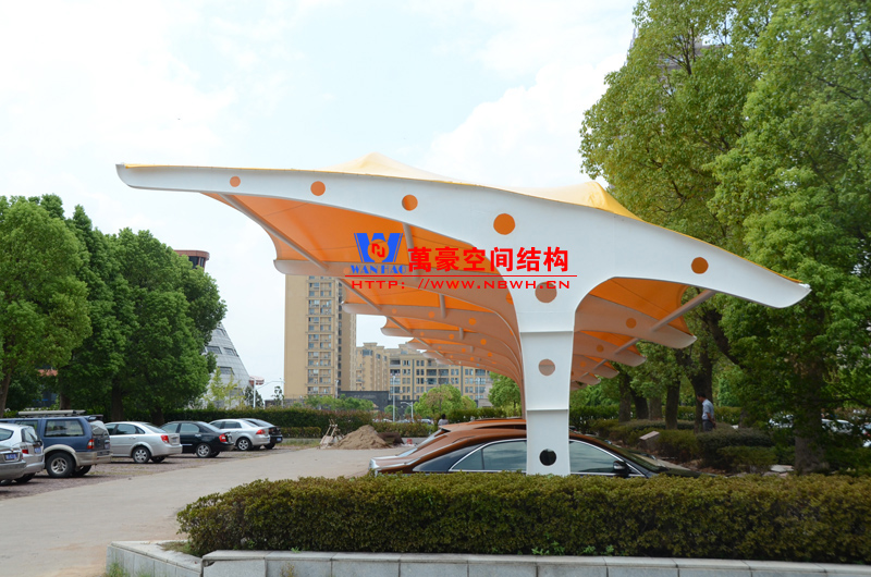 索膜結構停車棚,是以建筑織物,即膜材料為張拉主體,與支撐構件或拉索共同組成的結構體系,它以其新穎獨特的建筑造型,良好的受力特點——成為大跨度空間結構的主要形式之一。膜材料是指聚酯纖維基布或PVDF、PVF、PTFE等不同的表面涂層,配以優質的PVC組成的具有穩定的形態,并可承受一定載荷的建筑紡織品。它的壽命因不同的表面涂層而異,一般可達成10-20年。