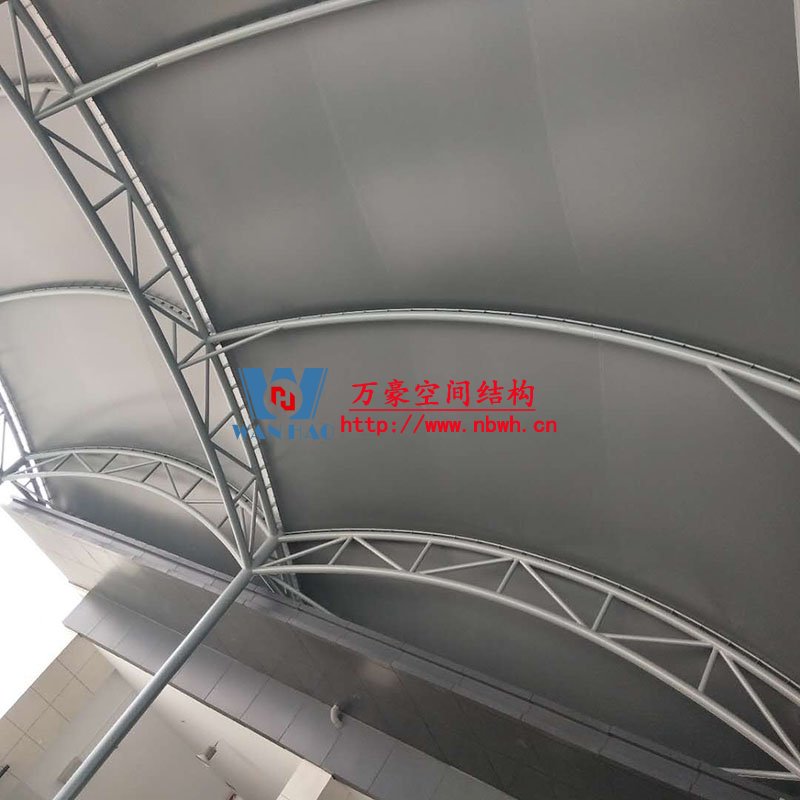奉化方橋農副鋼膜結構雨棚工程位于浙江省寧波市奉化市內,此工程用鋼量100噸,膜結構展開面積3500平米,由寧波萬豪空間結構工程有限公司承建。