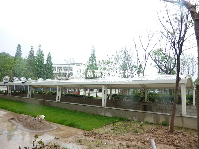 陽明溫泉山莊車庫出入口膜結(jié)構(gòu)位于浙江省寧波余姚市陸埠鎮(zhèn)陽明溫泉山莊內(nèi)。山莊總建筑面積6.8萬平方米,其建筑群由酒店主樓、別墅、健診中心、室內(nèi)外溫泉區(qū)等區(qū)域組成,集溫泉度假、商務(wù)會(huì)議、高端宴席三大主題。地下車庫出入口膜結(jié)構(gòu)以其獨(dú)特的造型和良好的性能,與陽明溫泉山莊顯得十分搭配,為其增加一份特有的色彩。