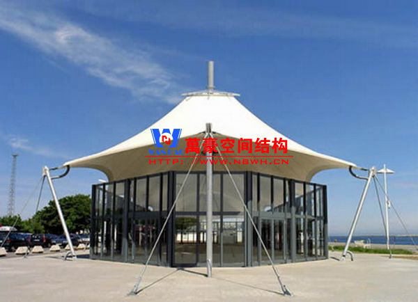 餐廳膜結構建筑主要包括戶外餐廳膜結構和室內餐廳膜結構。戶外餐廳膜結構形式多樣,有的是整個覆蓋在餐廳之上的膜結構,有的是覆蓋某片固定區域做為用餐區的膜結構,還有的采取一桌一頂棚的形式存在,主要功能是遮陽擋雨作用。室內餐廳膜結構建筑主要分為頂棚膜結構和裝飾膜結構兩種,主要起到裝飾作用,增加環境的美感。