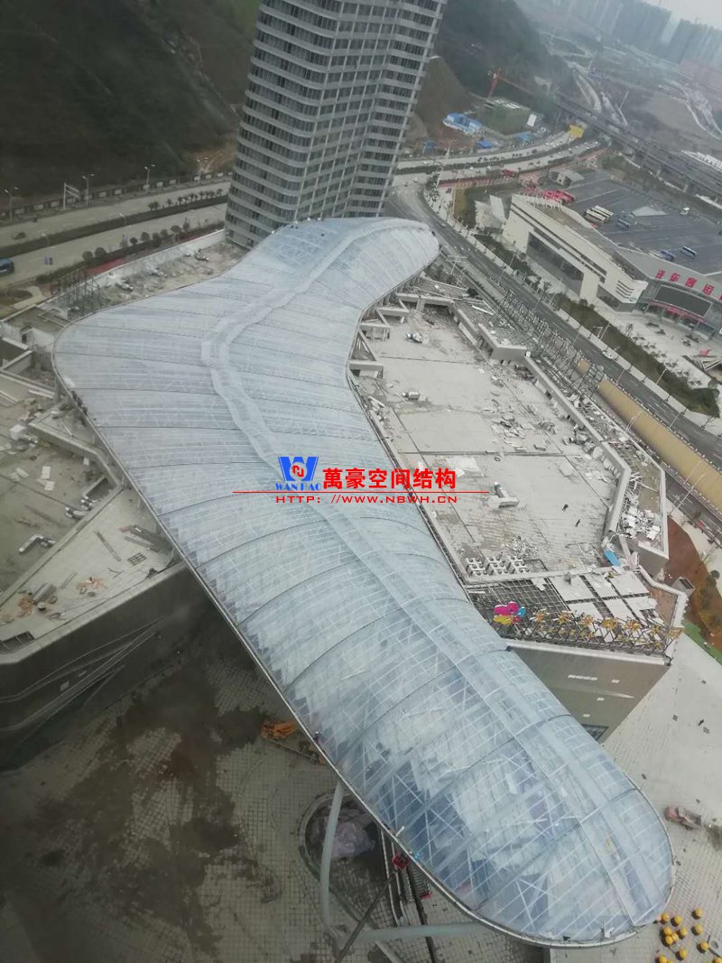 此天幕膜結構工程由寧波萬豪空間結構工程有限公司承建,包括圖紙深化,二次鋼結構制作安裝、膜結構制作安裝、排水溝制作安裝等。萬豪如期完美的完成了此次工程,得到了業主和領導的一致好評。