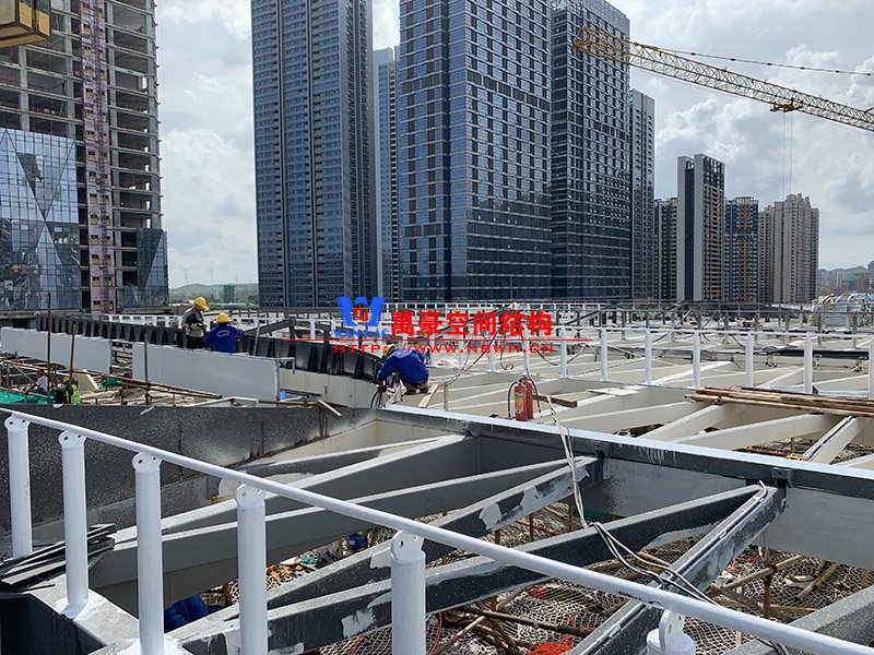 紅山六九七九商業(yè)中心項(xiàng)目幕墻工程Ⅱ標(biāo)段膜結(jié)構(gòu)鋼結(jié)構(gòu)工程位于廣東省深圳市龍華區(qū),此工程用鋼量300噸,膜結(jié)構(gòu)展開(kāi)面積5000平米,由寧波萬(wàn)豪空間結(jié)構(gòu)工程有限公司承建。