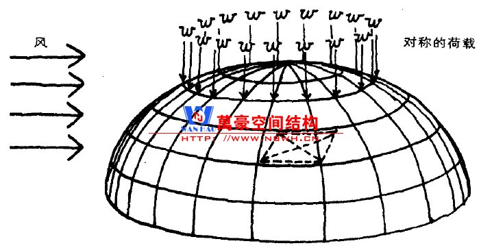 網(wǎng)殼受力方式為薄膜作用,屬于拱結(jié)構(gòu)向三維的拓展;因此,與拱類(lèi)似的問(wèn)題會(huì)出現(xiàn)在網(wǎng)殼上。比如:整體穩(wěn)定問(wèn)題;不對(duì)稱(chēng)荷載敏感等。
