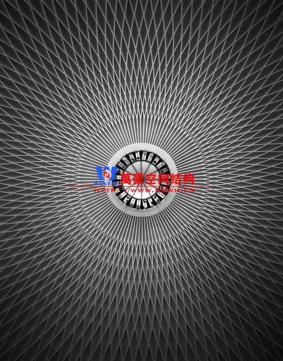 天窗位于交通中心地下一層圓形中庭上空,人流在這里交匯,在選擇結構網格布置時需要考慮其向心匯聚效應,因此方向性較弱的施威德勒網格和凱威特網格就不適合。