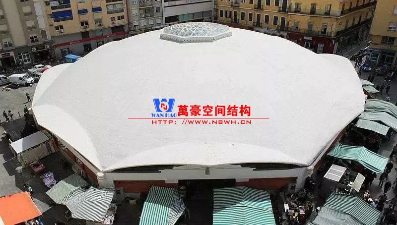 再比如托羅哈1933年在瑞士設計的阿赫西拉斯鎮集市屋面。正八角形穹頂直徑達47.6m,曲率半徑為44.2m。作為單一的球殼,它的跨度第一次超越了萬神廟穹頂。殼體厚度最小為8.9cm,厚跨比是1/535;支承點附近加厚至45.7cm。