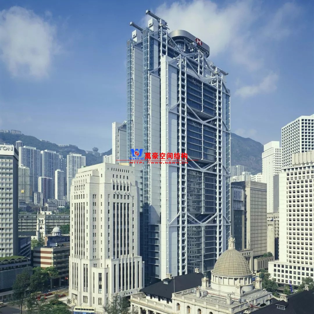 匯豐銀行總部大樓上部結構43層,180m高,地下有四層深16m~20m不等的地下室。總寬約55m,總長約70m。總平面呈矩形,橫剖面呈“山”形。