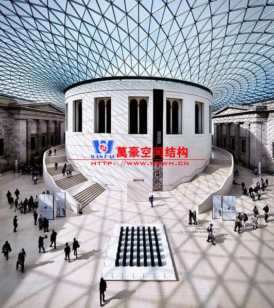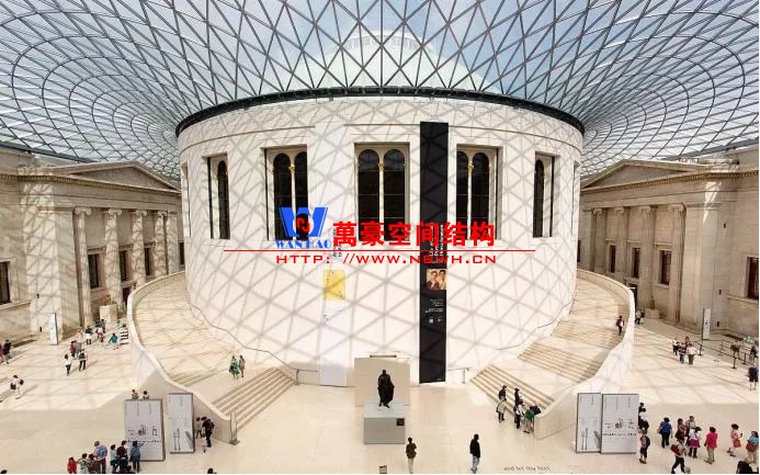 英國博物館為了解決內部缺乏空間、缺乏通道、中心圖書館利用率低的問題,啟動了大庭院加建天幕的改造項目,由福斯特事務所負責設計,其設計構想是新與舊共生。