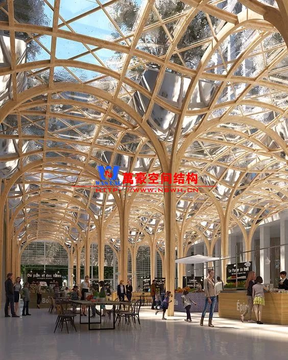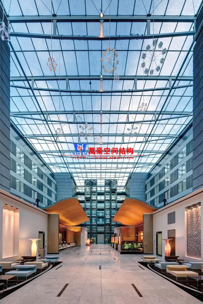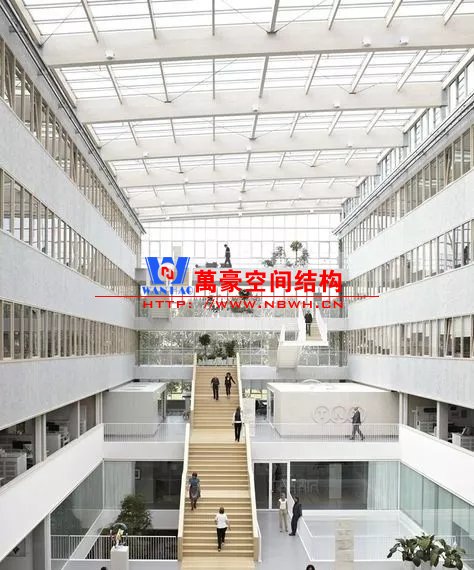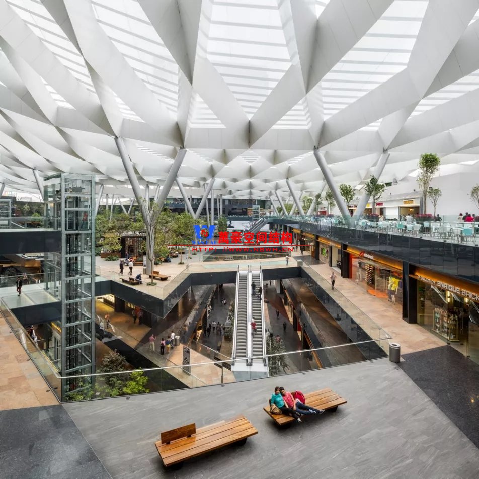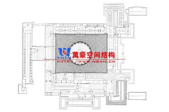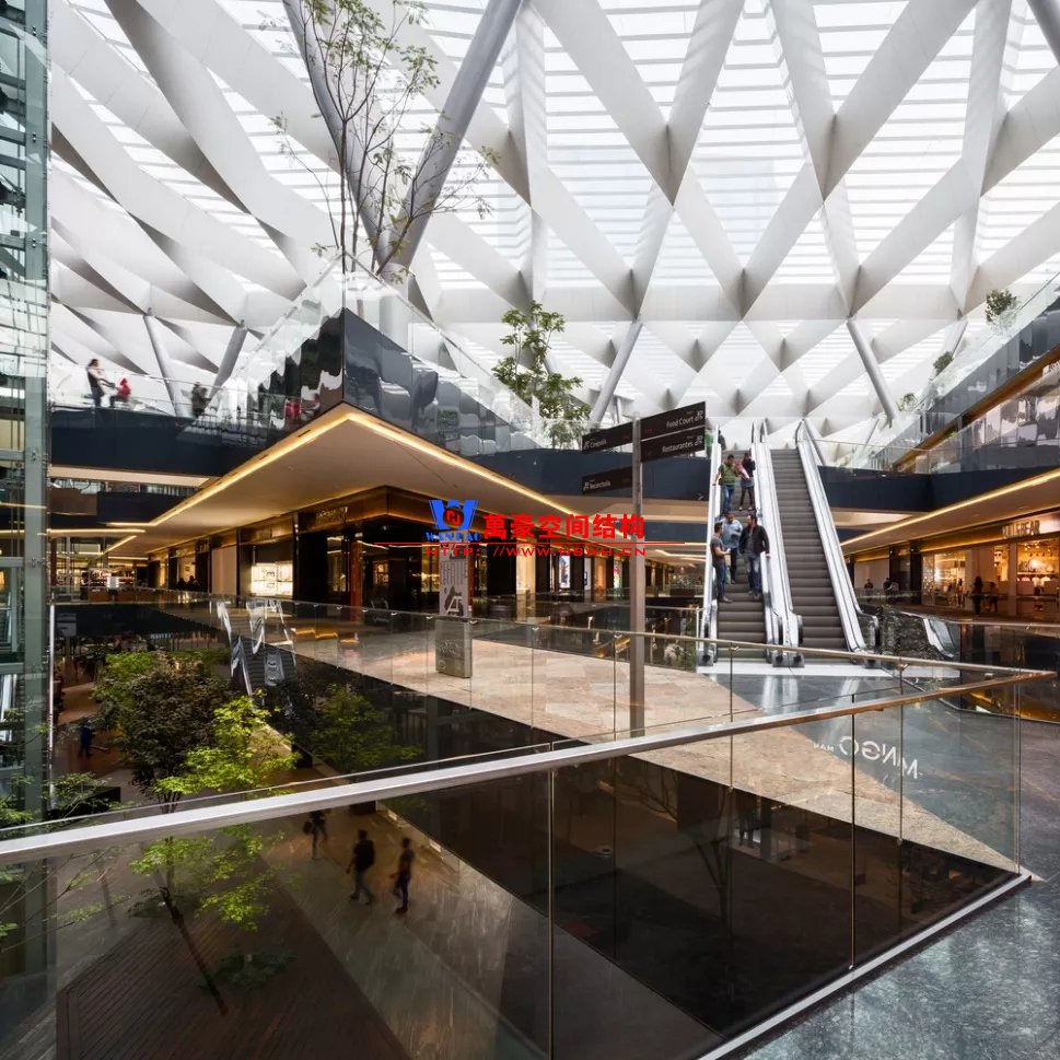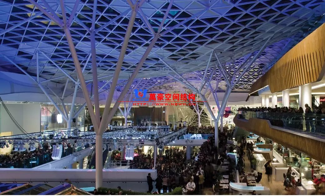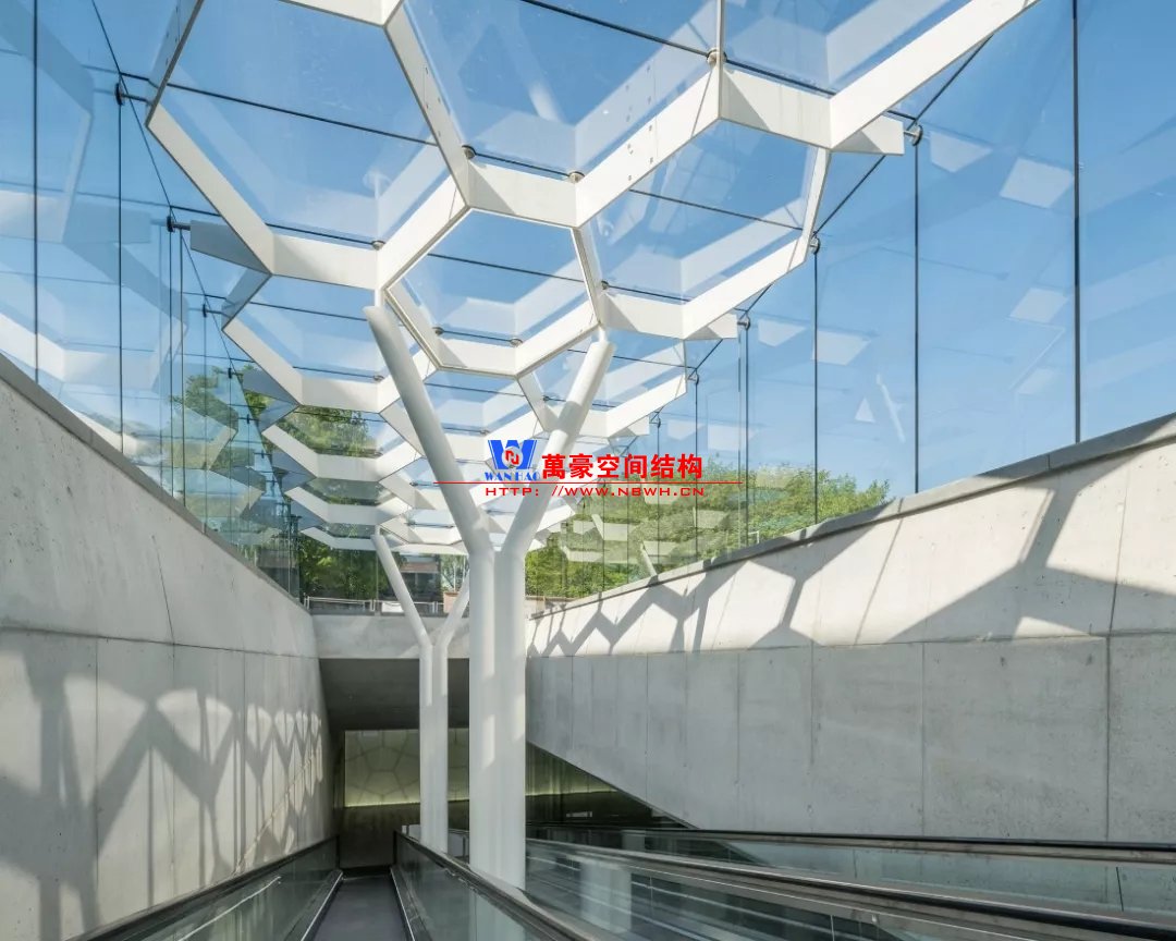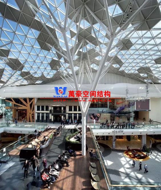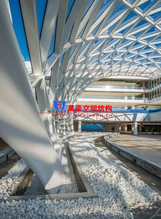 裙房之間的天幕為樹形柱支承