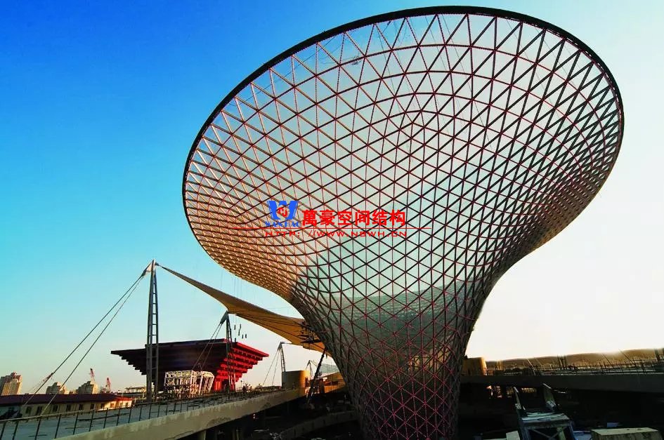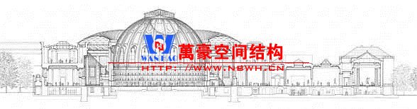 規則曲面的天幕一般采用鋼結構網殼形式,利用網殼曲面的形抗原理,結構以軸向受力為主、效率高,以較小的截面尺寸即可實現很大跨度。這一類網殼曲面多為圓柱面、球面。