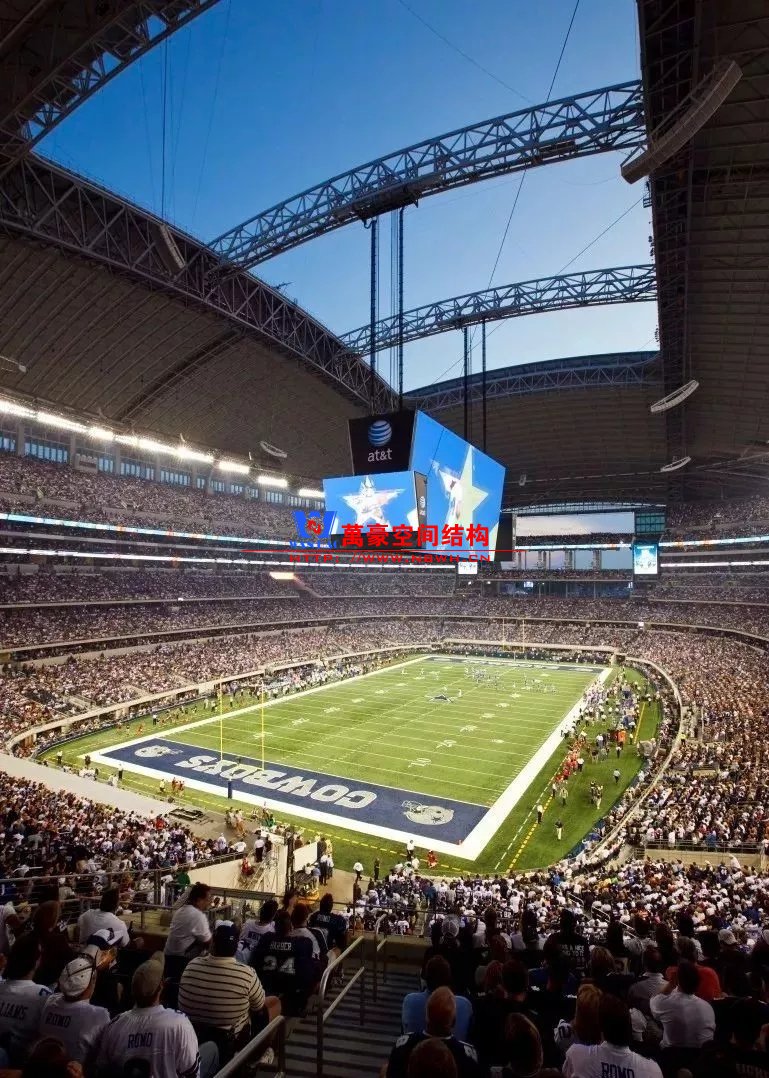 AT&T體育場(chǎng)是被稱(chēng)為“美國(guó)之隊(duì)”的美國(guó)國(guó)家橄欖球聯(lián)盟球隊(duì)——達(dá)拉斯牛仔隊(duì)的主場(chǎng)。體育場(chǎng)總規(guī)模600,000平方米,建筑規(guī)模288,000平方米,其標(biāo)志性的活動(dòng)幕墻與可開(kāi)合屋頂,豐富的坐席與包廂產(chǎn)品以及戶(hù)外廣場(chǎng),組成了卓越的多功能場(chǎng)館,可舉辦美式橄欖球、足球、籃球、格斗、越野摩托、牛仔競(jìng)技、演唱會(huì)、文藝慶典等多項(xiàng)活動(dòng)。實(shí)現(xiàn)全年承辦近300場(chǎng)各類(lèi)大型活動(dòng)。