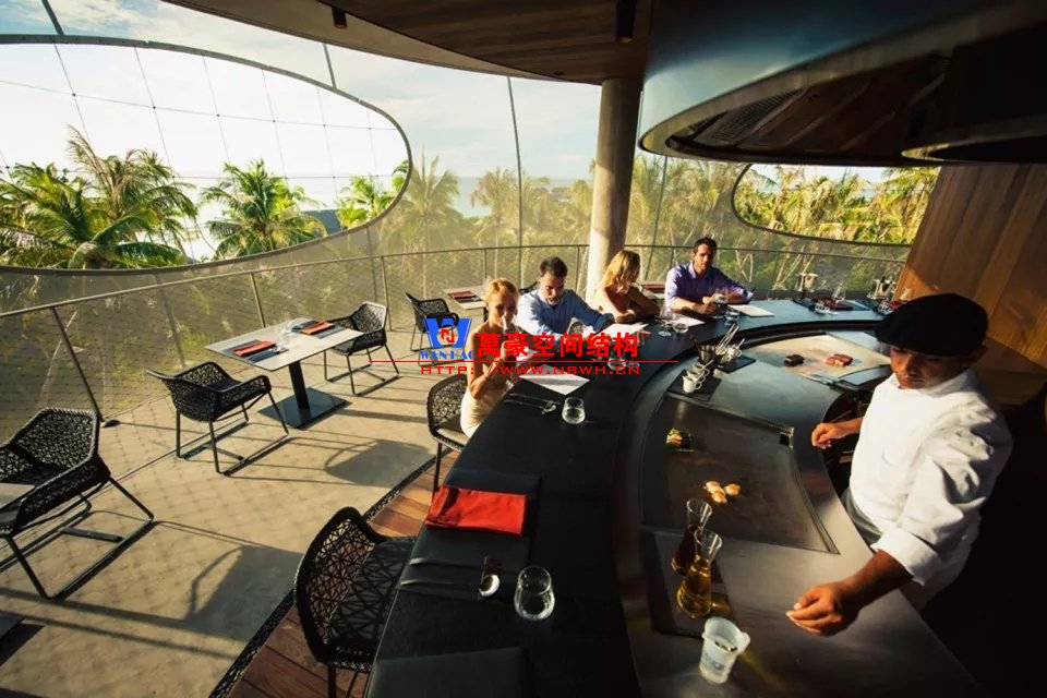 法拉利織物幕墻完美的微氣候調(diào)節(jié)系統(tǒng)適合窖藏世界上最優(yōu)質(zhì)的紅酒,此外還有口味絕佳的日本料理在此恭候游客的品嘗。酒窖占據(jù)了兩個較低的樓層。其余樓層用于餐廳設(shè)施和餐廳本身。最后一層設(shè)有一個休息室,可欣賞整個島嶼的景色-這是馬爾代夫所有地區(qū)唯一的全景視圖。