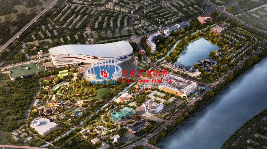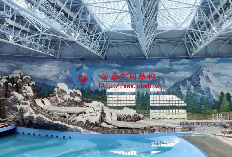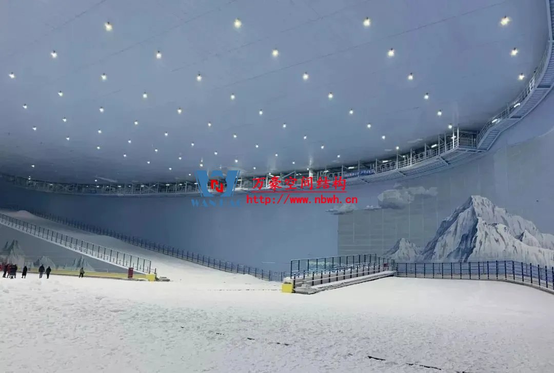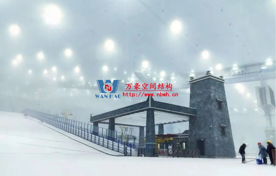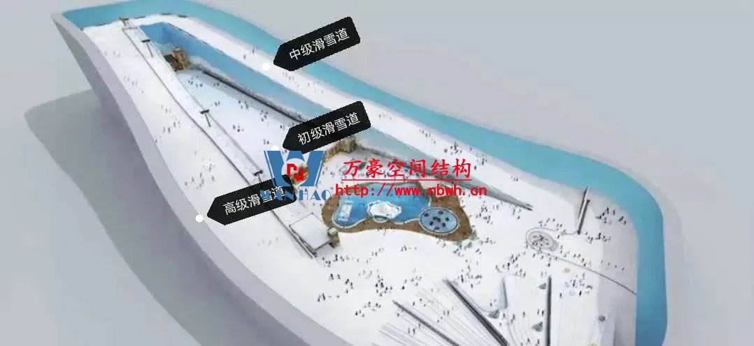 水雪綜合體用鋼量達到2.4萬噸,雪世界最長滑雪道有320米,垂直落差達60米,相當于20層樓高。
