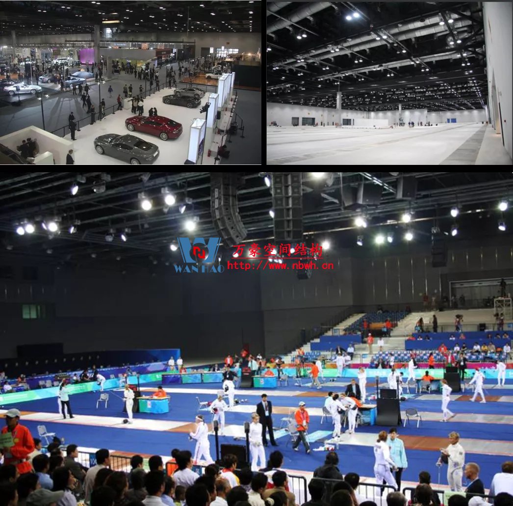 通用空間概念為現今大量建造的體育場、體育館、展廳等提供了功能合理性的理論基礎。盡管這些建筑大多只能稱為“多用途場館”,與密斯描述的空間通用性相距甚遠。從某種意義上來說,通用空間在實踐中更多的表現為空間的多功能特征。同一大空間中多種活動的需求與強調功能分區的觀點截然相反,提出了實現建筑、結構、機電整體性技術整合的新要求。