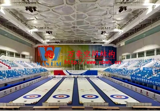 國家游泳中心(水立方)在2008年舉辦了游泳、跳水、花樣游泳比賽;2022年冬奧會期間將舉辦冰壺和輪椅冰壺比賽。除了奧運比賽之外,水立方比賽大廳還舉辦多種多樣的大型活動,從水上芭蕾、音樂會、商業發布到電視娛樂節目,甚至作為宴會大廳、藝術展示大廳使用。由Weaire–Phelan結構斜向切割并安裝ETFE氣枕形成的立面,展現了當代結構技術的紀念性,并形成這個長方形大廳的獨特魅力。
