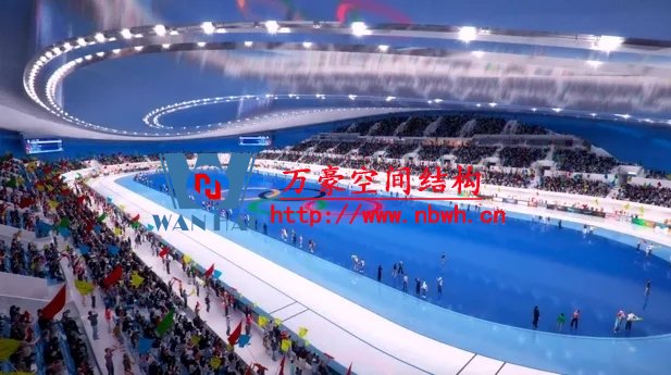 國家速滑館的比賽大廳安裝帶有反射涂層的膜結構吊頂,展現為冰場節能定制的技術特征。這一反射雙曲面不僅在冬奧會期間提供前所未有的電視畫面,也為未來的多功能使用提供多種可能。
