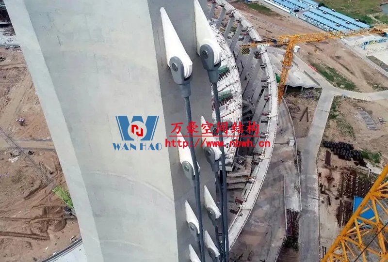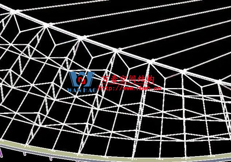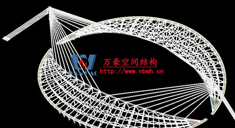 1、整個索網、環梁和吊塔形成整體受力體系,結構受力傳遞路徑復雜;