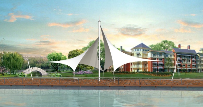 膜結構是用高強度柔性薄膜材料經受其它材料的拉壓作用而形成的穩定曲面,能承受一定外荷載的空間結構形式。其造型自由、輕巧、柔美,充滿力量感,阻燃、制作簡易、安裝快捷、節能、易于、使用安全等優點,因而使它在世界各地受到廣泛應用。