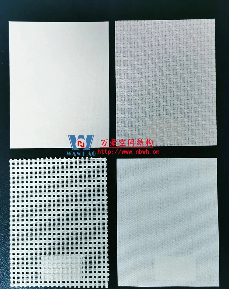 基材紗線編織間距很大,涂層不再是滿覆,形成一定的開孔率(20~70%)。特點是透光率高(30~70%,透光透景)、裝飾遮陽效果好;強度低于外膜、透氣透水、不吸音。
