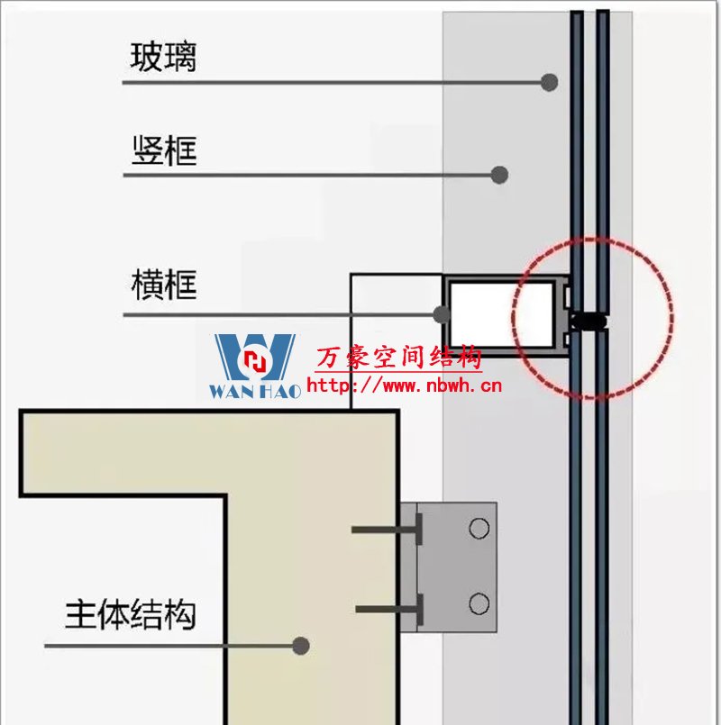 (1)與主體結構傳遞荷載的方式不同:幕墻通過錨固支座以點傳遞的方式,將自重和所受荷載與作用傳給主體結構;窗是通過四周的框架與洞口連接以線傳遞的方式將自重和所受荷載與作用傳給主體結構;