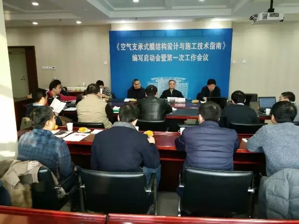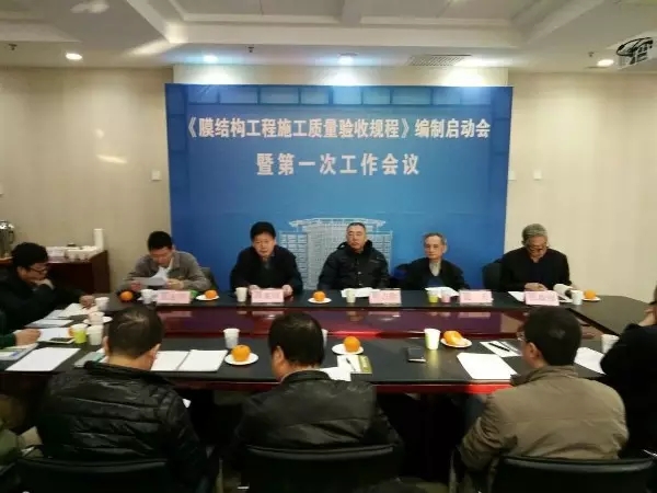 2016年12月17、18日,由北京工業大學建筑工程學院聯合中國鋼結構協會空間結構分會主持編制的《膜結構施工質量驗收規程》和《空氣支承膜結構設計與施工技術指南》編制啟動會順利召開。來自中國建筑科學研究院、同濟大學、哈爾濱工業大學、上海交通大學、北京交通大學、北京市建筑設計研究院、上海現代建筑設計(集團)有限公司以及膜結構會員單位的30多位專家出席了啟動會和第一次工作會議。(我司也榮幸的出席)