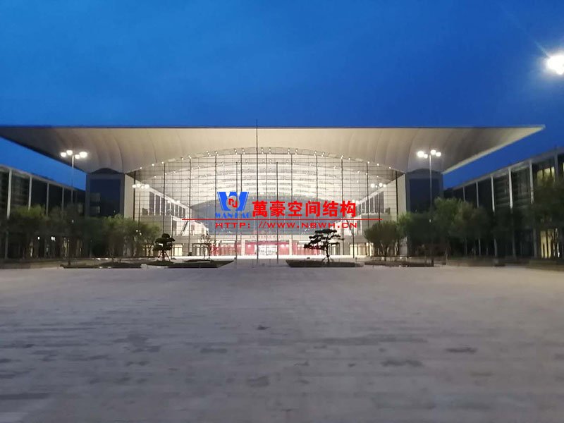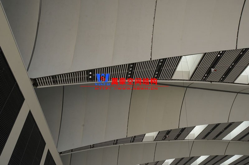 萬豪膜結構承建了此項目的幕墻工程,現場測量、深化設計、制作及安裝由寧波萬豪全權負責;該工程用鋼量1000多噸,PTFE室內屋面膜結構展開面積17000多平方米,PTFE室外屋面膜結構展開面積20000多平方米。