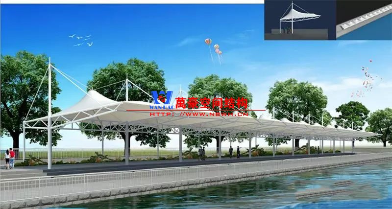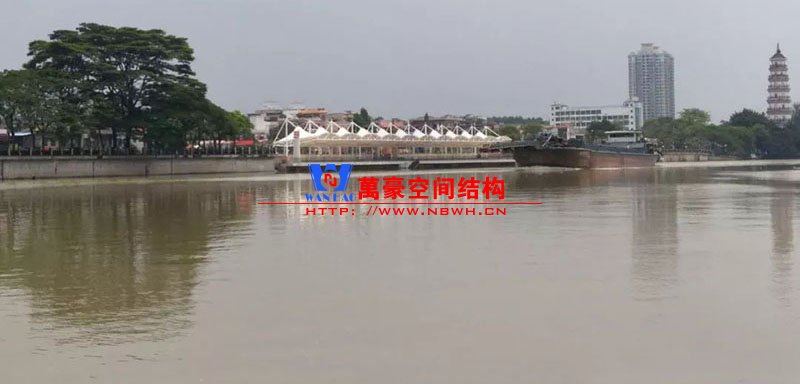 東莞東江西岸景觀膜結構工程位于廣東省東莞市,該項目是當地政府打造的重點工程,是為了宣揚中華傳統文化龍舟節專門打造的,由寧波萬豪空間結構工程有限公司中標承建。