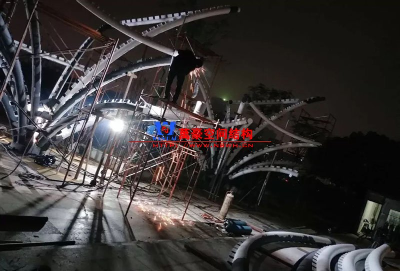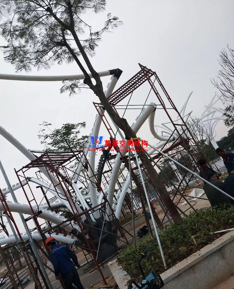 鋼構安裝初步完成,效果初現,膜結構開始安裝。