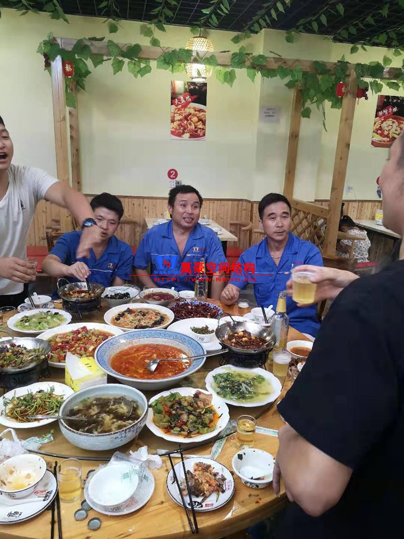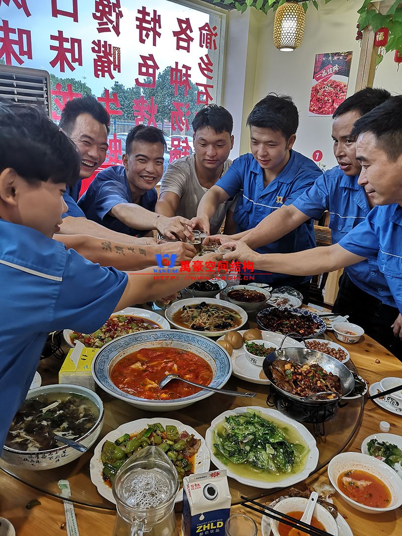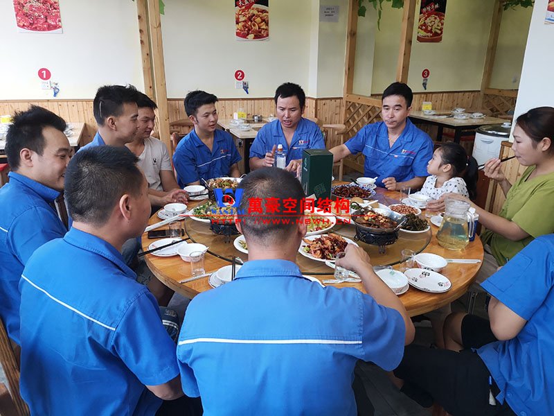 中秋節假期馬上就要過去了,想必大家都玩的挺開心吧。不知道你們的中秋是怎么過的,是與家人團聚,還是與朋友歡聚呢?萬豪膜結構就不一樣了,我們是整個工廠員工歡聚一堂,共進晚餐,喜迎中秋。 雖然來自五湖四海,相聚在萬豪,大家就是一家人,我們會為了我們的共同目標一起前進。