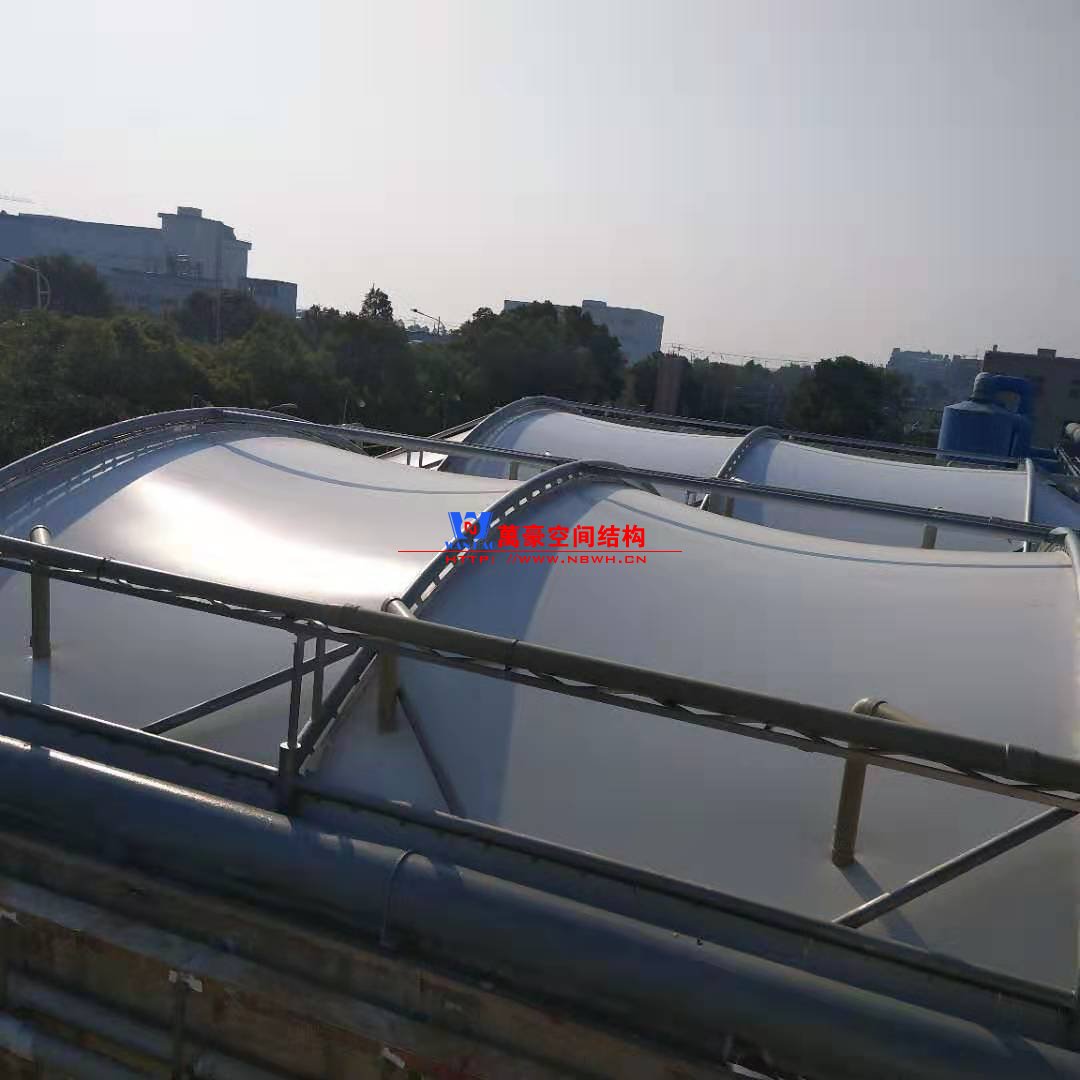 浙江東邦藥業(yè)有限公司污水池(好氧池)加蓋密閉膜結(jié)構(gòu)工程位于浙江省臺(tái)州市臨海市東邦藥業(yè)有限公司內(nèi),此工程用鋼量50噸,膜結(jié)構(gòu)展開面積2500平米,由寧波萬豪空間結(jié)構(gòu)工程有限公司承建。 目前該工程已完美竣工,大家可以欣賞一下它的風(fēng)采。?