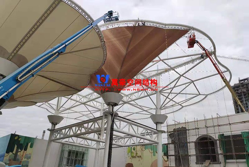 ?目前云朵12356鋼結(jié)構(gòu)及油漆完工;云朵二膜施工完成;云朵一膜施工八片;云朵三膜施工四片。