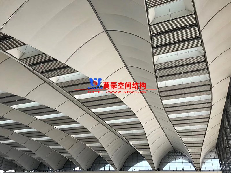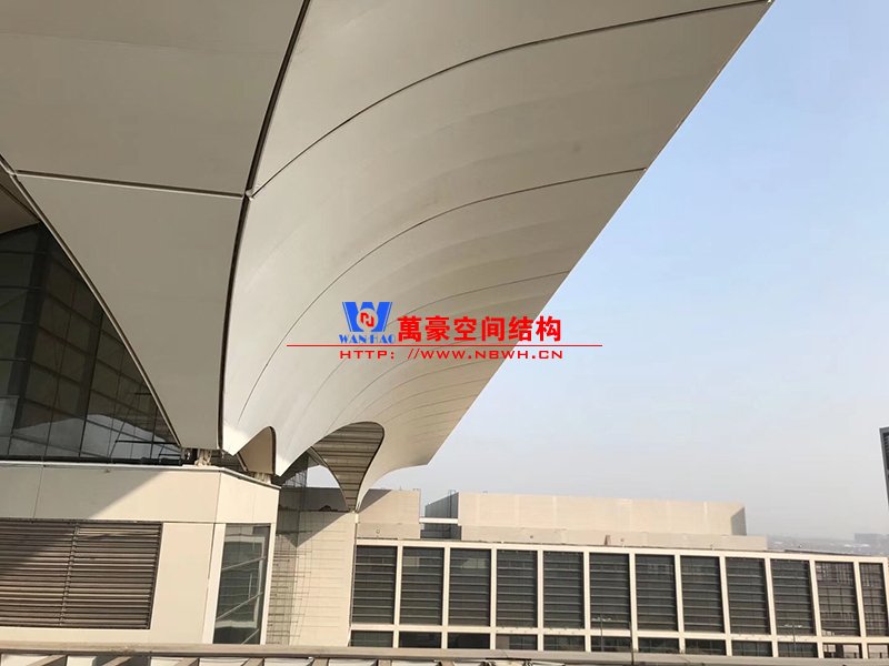 首先,我們觀摩學習了青島紅島國際會展中心PTFE反吊膜結構項目,該項目施工已正式結束。