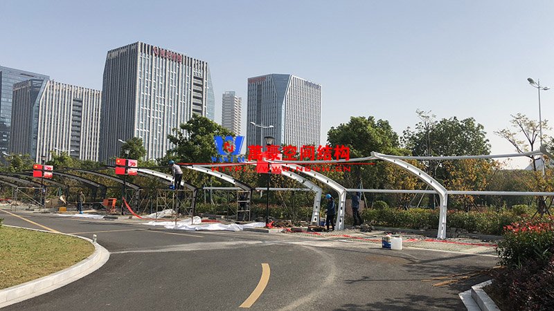太屺3#地塊商務(wù)樓(慈溪市國力土地資源投資開發(fā)有限公司)地面膜結(jié)構(gòu)車棚項目位于浙江省寧波市慈溪市,該項目膜結(jié)構(gòu)展開面積2000平米,用鋼量50噸,由寧波萬豪空間結(jié)構(gòu)工程有限公司承建。