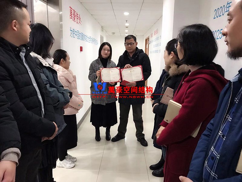 為此,向來賞罰分明的萬豪空間結(jié)構(gòu),決定為這兩個(gè)工程的項(xiàng)目經(jīng)理汪經(jīng)理進(jìn)行頒獎(jiǎng)。