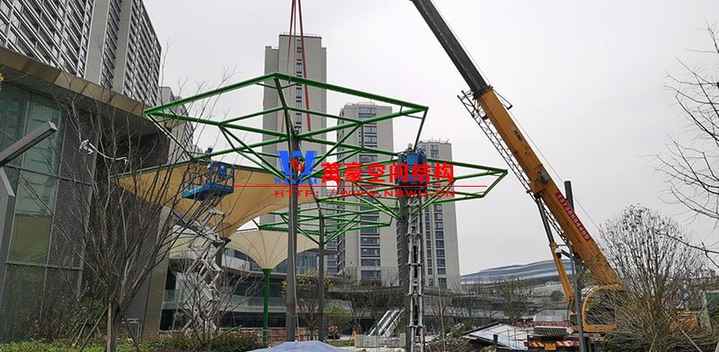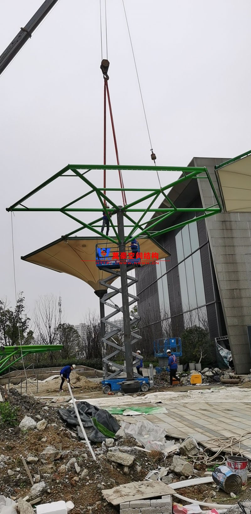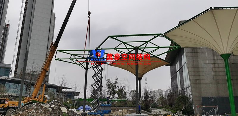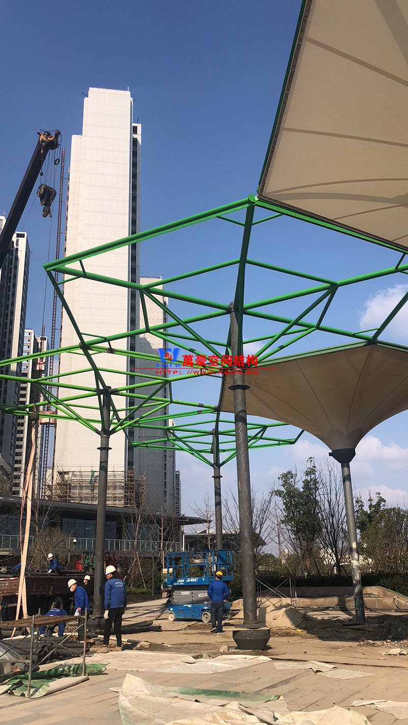 該項(xiàng)目膜材使用進(jìn)口PTFE膜材,膜結(jié)構(gòu)展開面積5000平米,用鋼量100噸,由寧波萬(wàn)豪空間結(jié)構(gòu)工程有限公司承建。