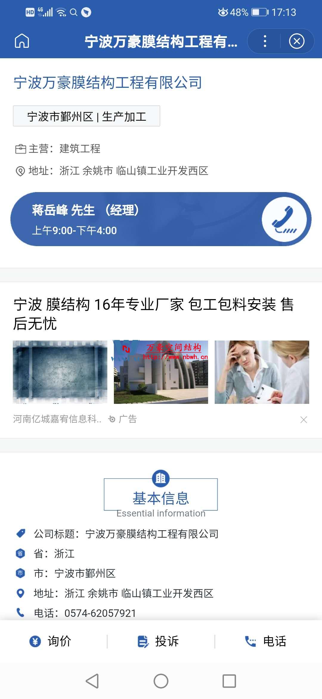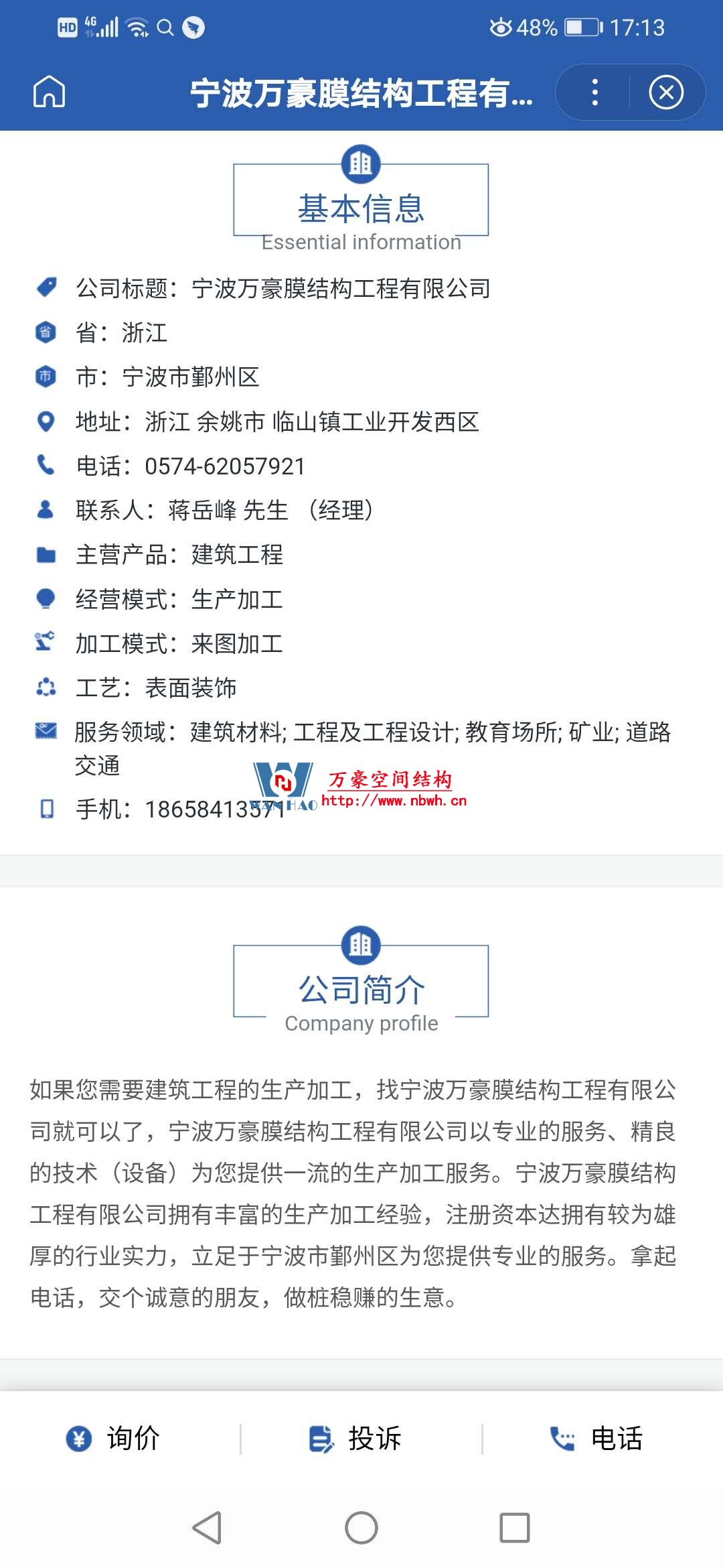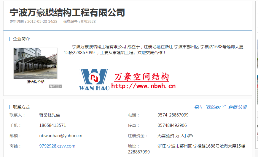 以下名為寧波萬豪膜結構工程有限公司的相關信息,與本公司無任何關系。