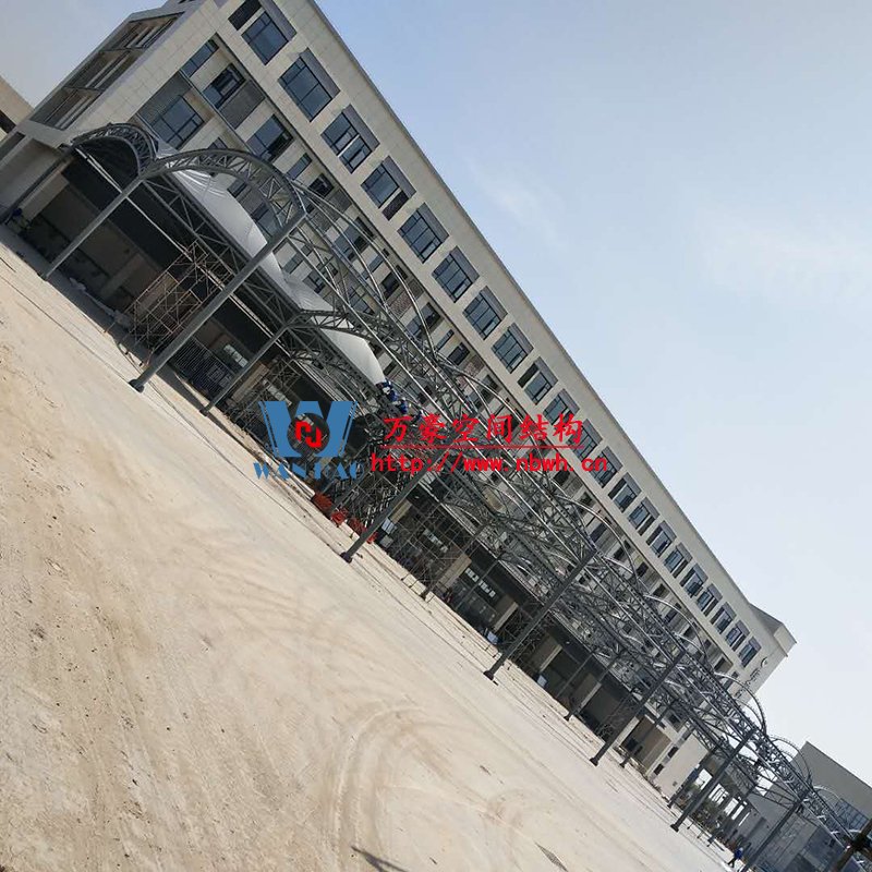 奉化方橋農(nóng)副鋼結(jié)構(gòu)雨棚工程位于浙江省寧波市奉化市內(nèi),此工程用鋼量100噸,膜結(jié)構(gòu)展開面積3500平米,由寧波萬(wàn)豪空間結(jié)構(gòu)工程有限公司承建。