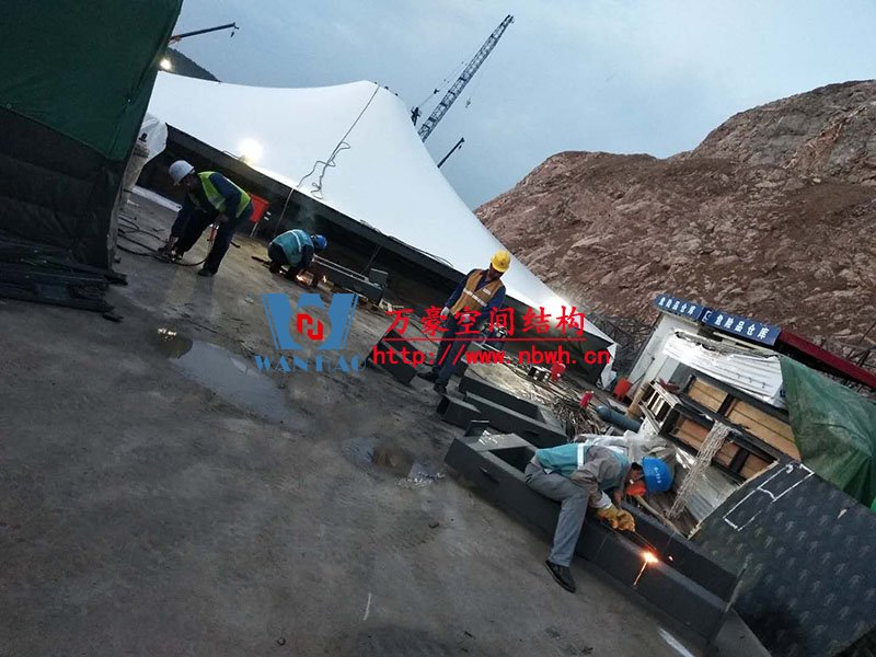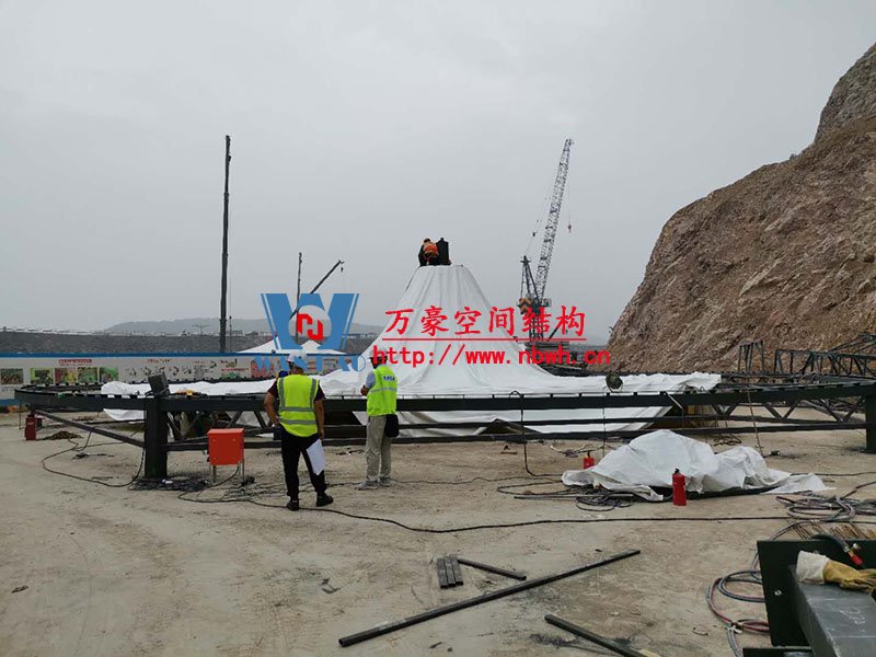 南京園博園穹蓋式膜結構棚項目位于南京市江寧區湯山風景區,該工程由寧波萬豪空間結構工程有限公司承建。 目前,第一個保溫棚已經吊裝到位,接下來第二、第三個棚按順序拼裝和安裝。
