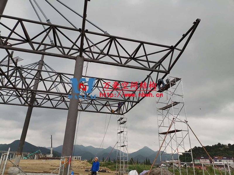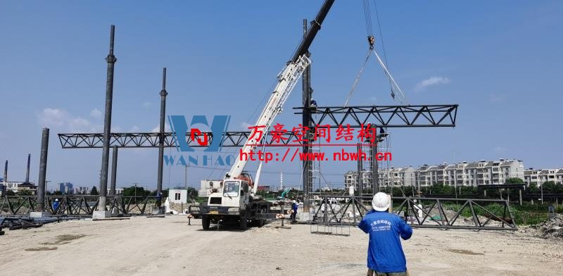 紹興福全高速收費站頂棚工程用鋼量60噸,由寧波萬豪空間結構工程有限公司加工和安裝。 目前,項目鋼結構安裝完成。 期待整個工程的完工,來領略它別致的風采。