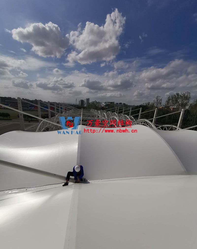 浙江紡織服裝職業技術學院東西校區運動場膜結構項目位于浙江省寧波市,膜結構展開面積6000平米,由寧波萬豪空間結構工程有限公司承建。 一、圖紙深化 二、現場施工 三、項目完工 目前該工程已完美竣工,大家可以欣賞一下它的風采。