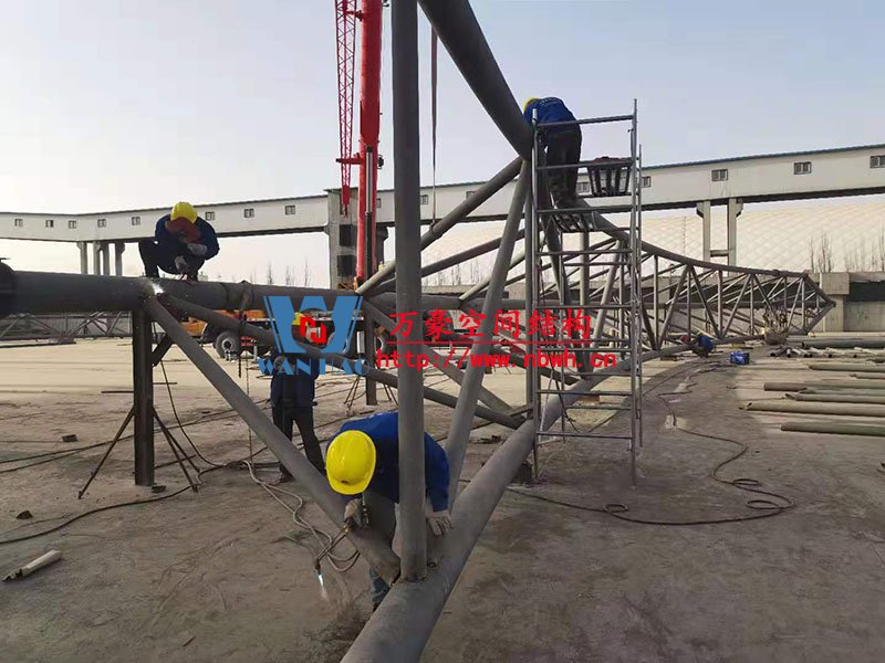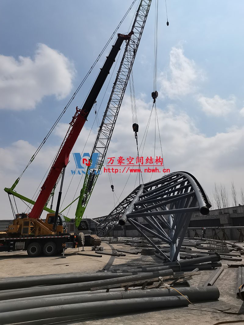 內蒙能源長城五礦選煤廠鋼骨架膜棚建設項目位于內蒙古鄂托克前旗上海廟鎮長城五礦選煤廠內。 本項目膜結構罩棚鋼結構高度40米,跨度115米,膜結構展開面積25000平米。 鋼結構主桁架一共6跨,目前已完成2跨。