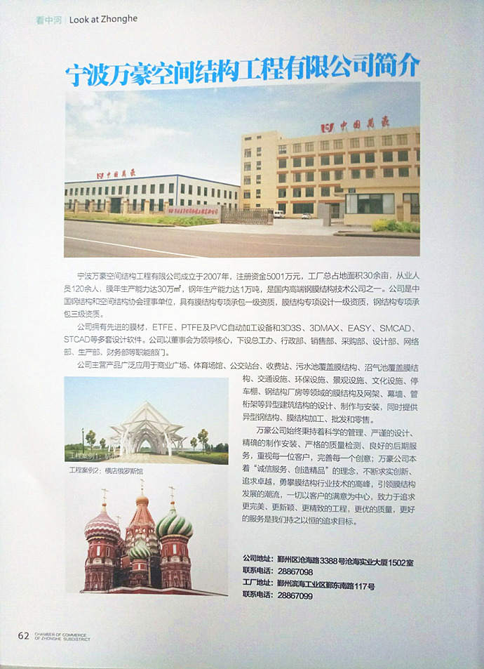 • 膜結構工程總承包特級(設計、制作、安裝)資質,鋼結構工程二級資質