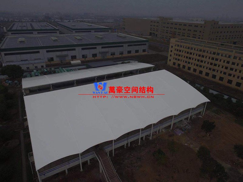 慈溪自來水廠污水池膜結構為工業設施配套工程。結構最大跨度40米,采用桁架結構外覆PVC膜材的形式,建筑面積5000㎡,用鋼量330噸,膜材用量6200㎡。項目施工難度大,實施階段考慮到實際運營的需要并保持自來水廠不受各項因素的干擾及污染(帶水作業),為該市的民生工程。