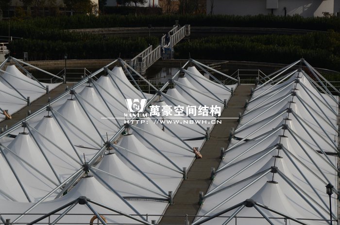 寧波北區污水處理廠廠址位于鎮海新泓口甬舟高速與化工區主干道交叉口附近,污水廠一期建設用地15.48公頃,膜結構加蓋面積達一萬多平方米。
